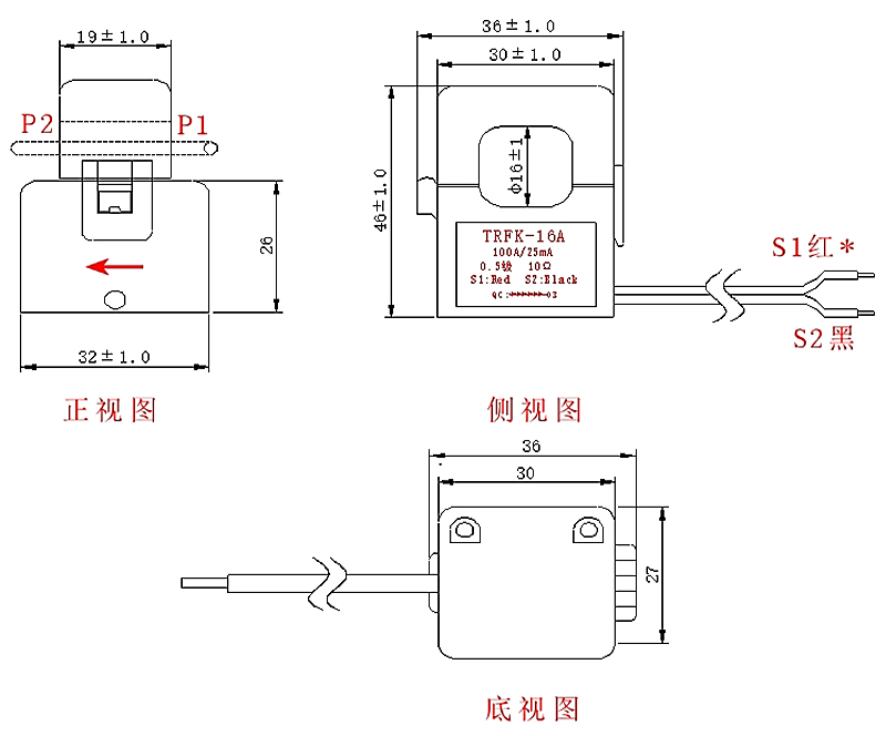 电气参数 一次额定电流 100A 二次额定电流 25mA